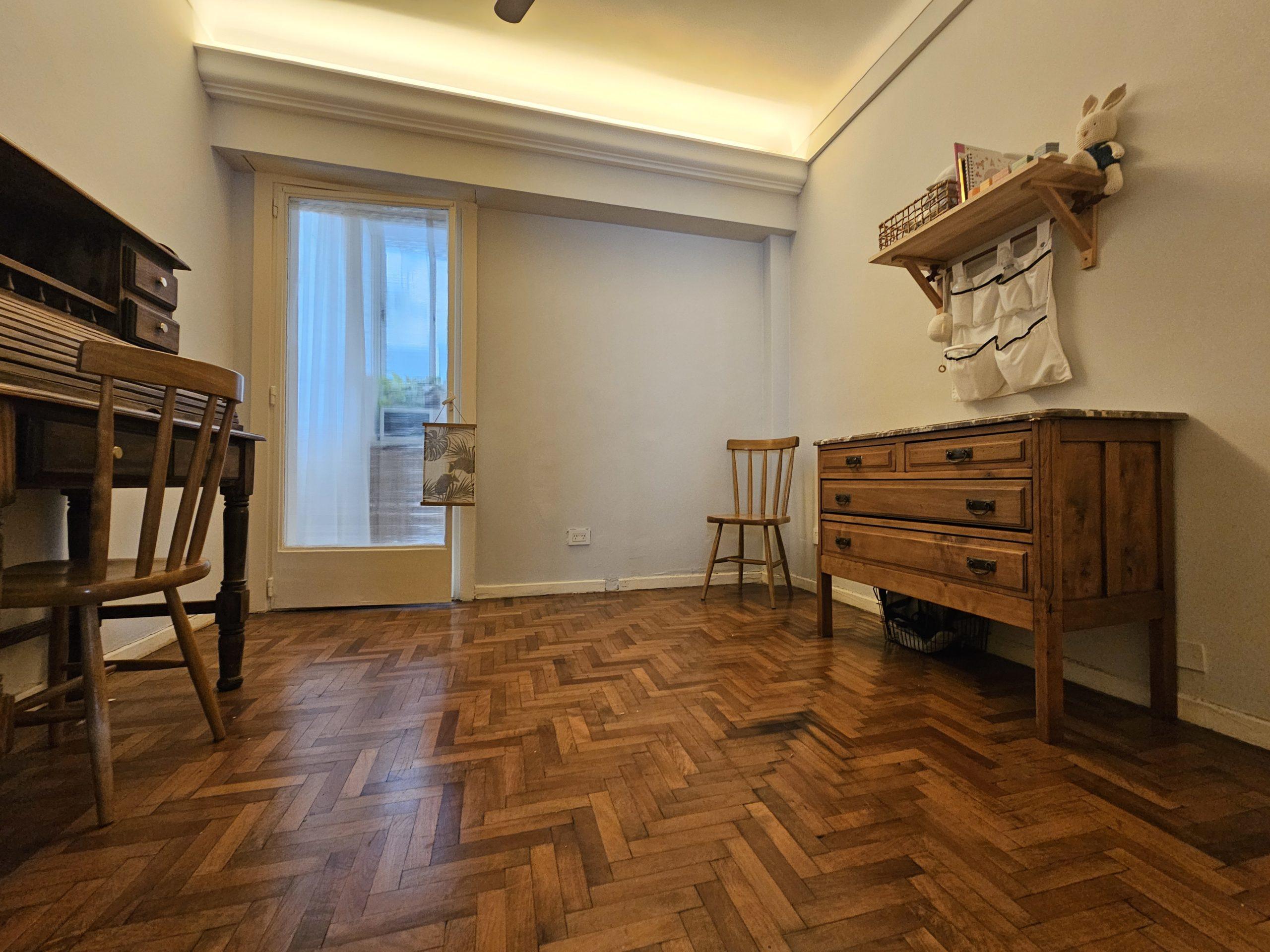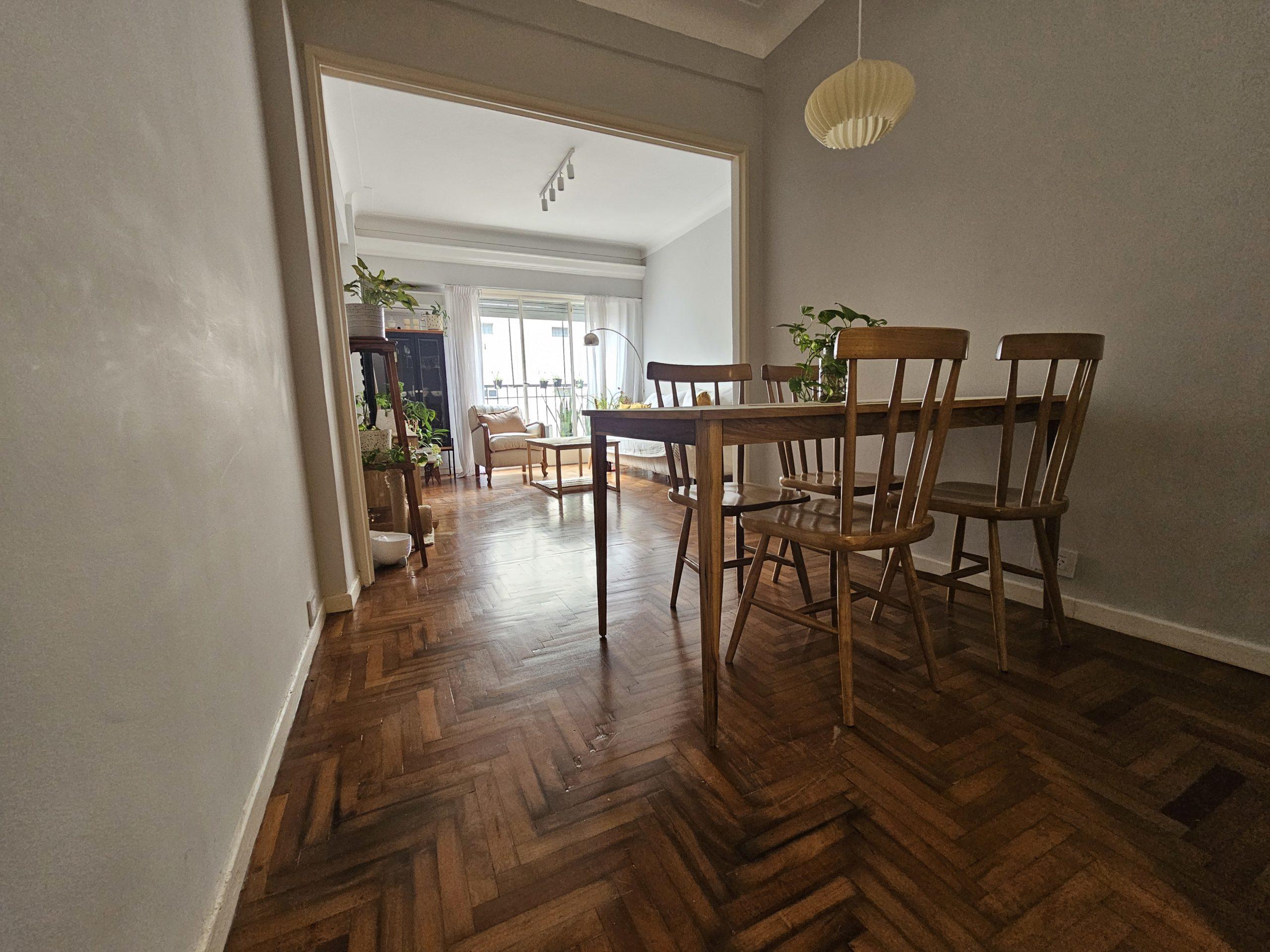– Living comedor amplio con piso original pulido y en excelente estado, gran ventanal y balcón francés que aporta luz natural durante todo el día